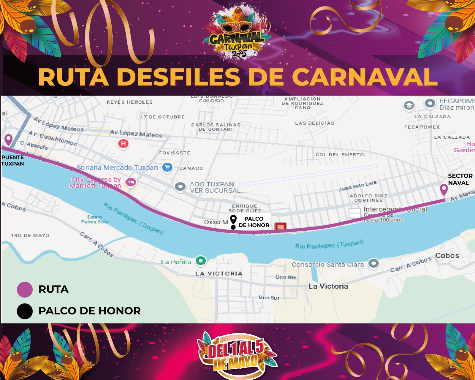 Desfiles del Carnaval Tuxpan 2025 serán del puente Tuxpan a la calle Francisco Murguía, 2 cuadras antes del Sector Naval