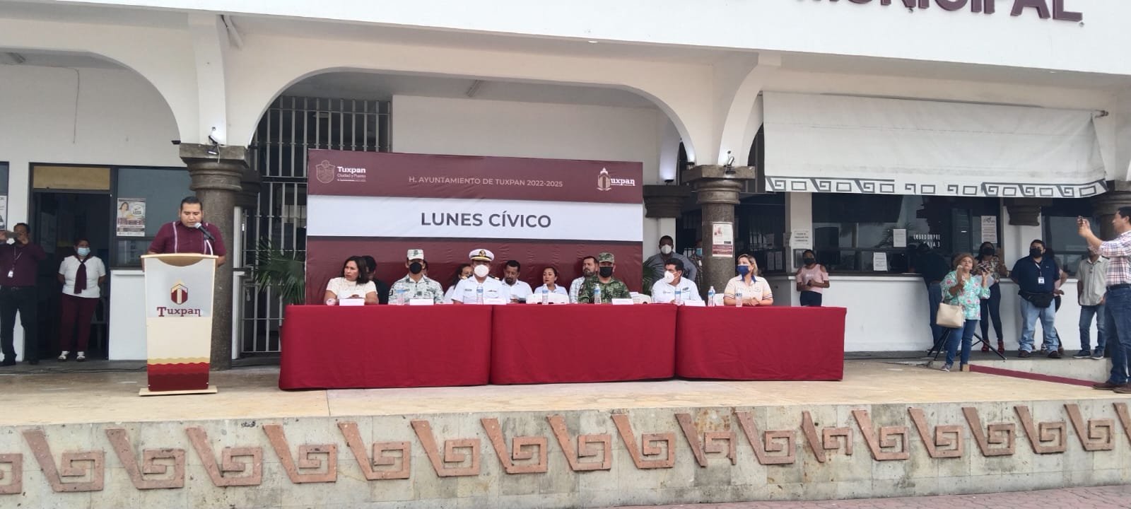 La mañana de este lunes se llevó a cabo el acto cívico de Honores a la Bandera, con la participación de autoridades Municipales, Navales y Militares.