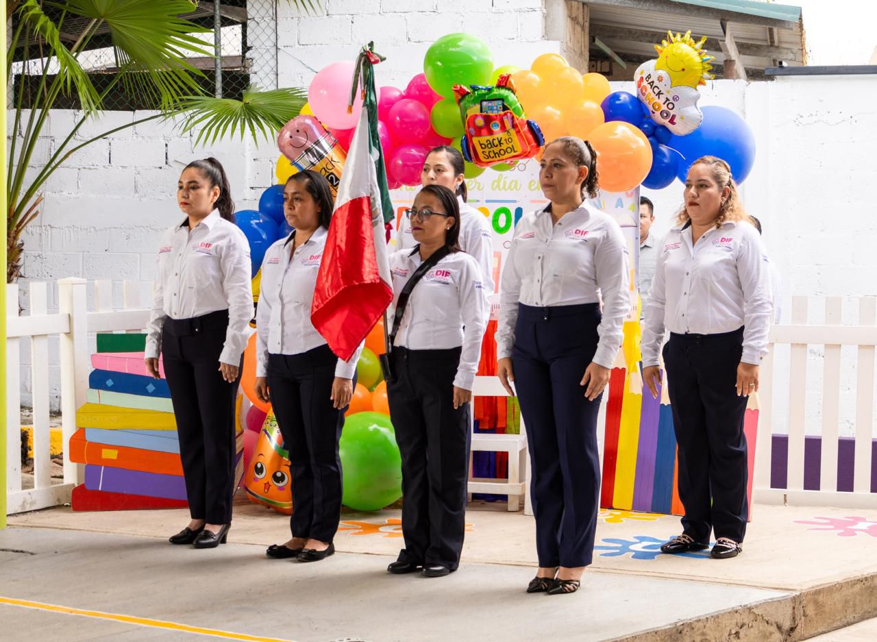 Después del acto cívico, la titular del DIF Municipal expresó: “Para nosotros esta estructura no es un simple techo, es un símbolo de cuidado y responsabilidad hacia nuestros pequeños, un espacio seguro que les permitirá jugar, convivir y aprender fuera del aula”.