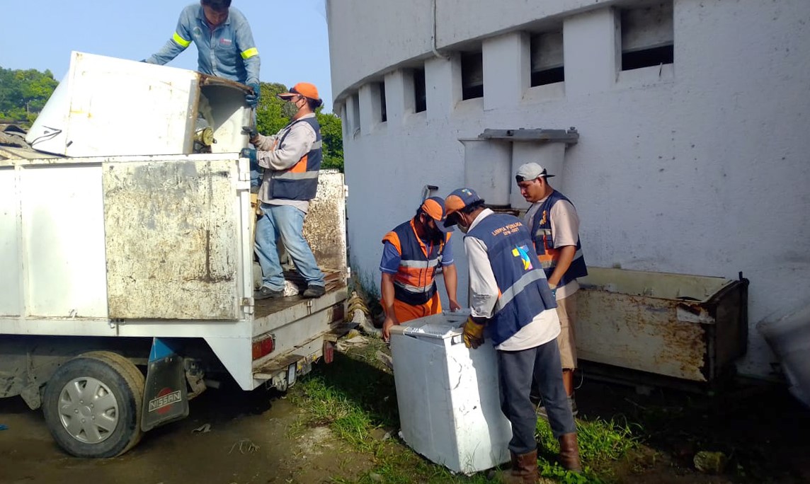 TUXPAN, Ver.- Con el propósito de reducir los potenciales criaderos del dengue o aedes aegypti la Coordinación de Servicios Generales Municipales, se encuentra trabajando en la descacharrización de objetos que puedan servir como focos rojos para la generación del mosquito, retirando aparatos electrodomésticos, plásticos, llantas y todo aquel recipiente en desuso, que sirva para la reproducción del mosquito.