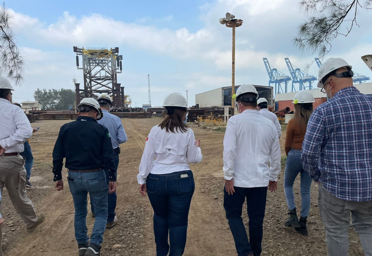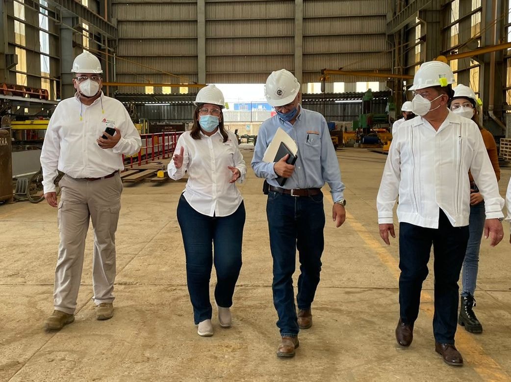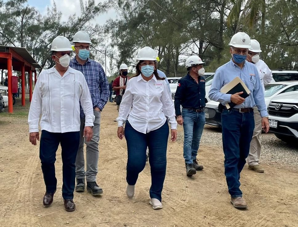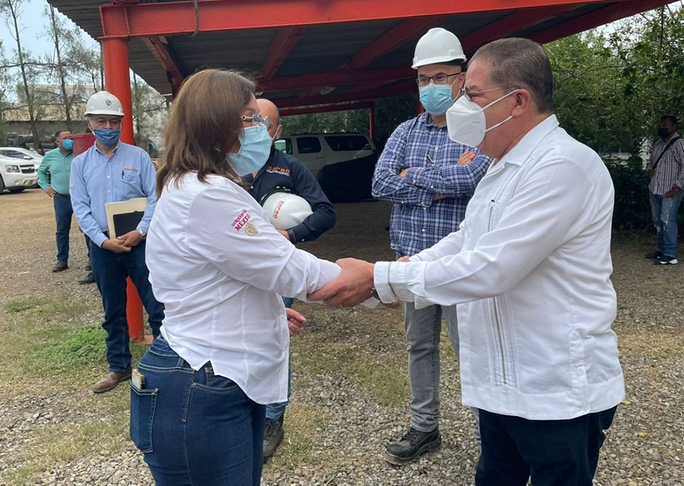 TUXPAN, Ver.- Este miércoles, el presidente municipal José Manuel Pozos Castro recibió a la Secretaria de Energía del Gobierno de México, Rocío Nahle García, a quien acompañó a una visita de supervisión en la empresa Grupo Carso, donde se fabrican equipos para la “Refinería Olmeca”, de Pemex, en Dos Bocas, Tabasco.