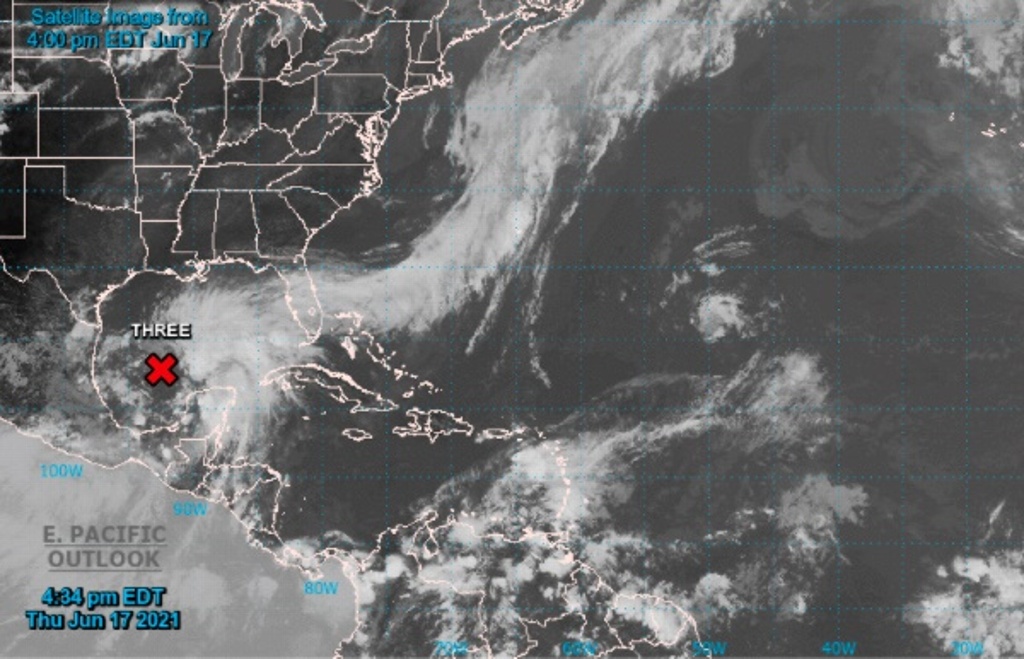 La Comisión Nacional del Agua (Conagua) informó que se formó el Potencial Ciclón Tropical Tres a partir de una zona de baja presión en el Golfo de México.