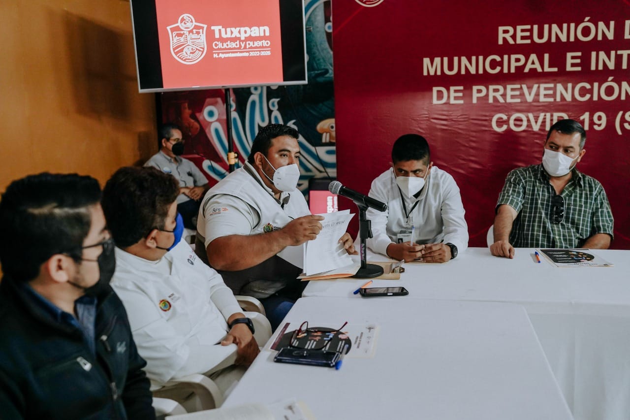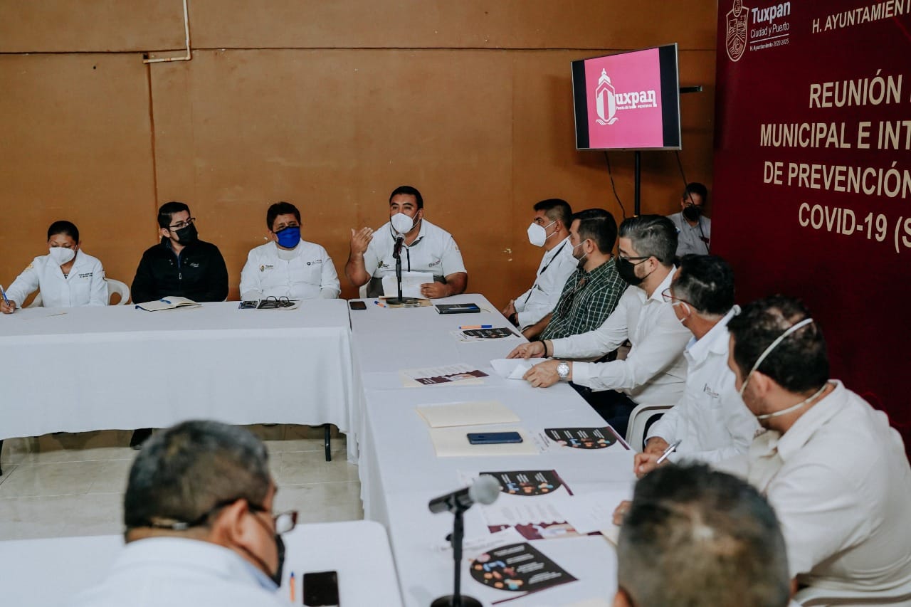 TUXPAN, Ver.- En el marco de una reunión municipal e interinstitucional de prevención y control del SARS-CoV-2 (COVID-19), en la que participó SESVER, representantes de dependencias gubernamentales y directivos de hospitales, se acordó fortalecer todas las medidas preventivas en establecimientos comerciales, empresas, instituciones públicas y escuelas.