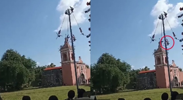 En redes sociales circula el momento de la caída del volador de Papantla en Huaquechula, Puebla.